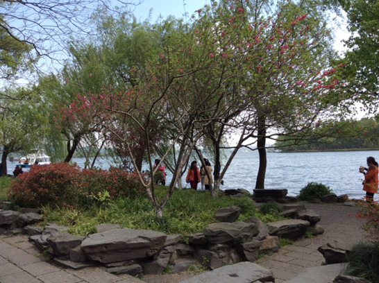 上午十點,我們乘船游西湖,泛舟風韻萬千“淡妝濃抹總相宜”的西子湖,遠觀三潭印月、阮墩環碧、湖心亭、孤山煙雨,漫步桃紅柳綠的蘇堤,品味蘇東坡“間株楊柳間株桃”之詩境。
